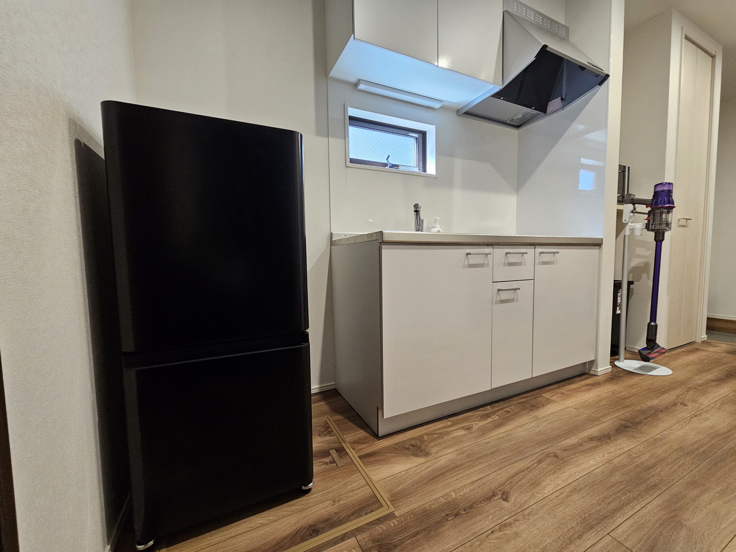 キッチンには冷蔵庫もあります。 HIコンロもあるのでちょっとしたホームパーティーにも。
